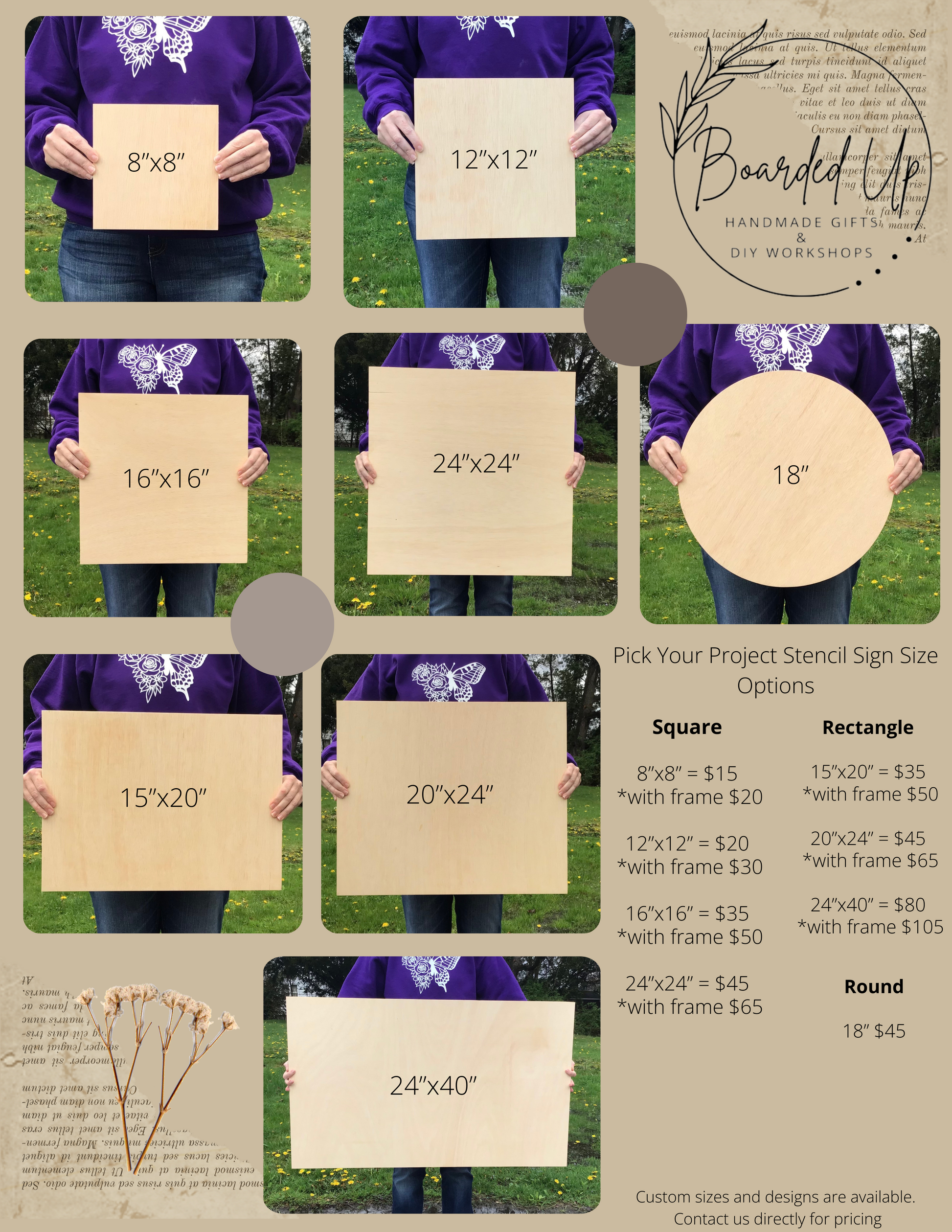 This design is one of our stencil sign designs. It comes in all of our square sizes.